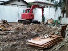 家屋の解体が終わったら、一度ゴミを綺麗に片付けてから基礎コンクリートを撤去していきます。